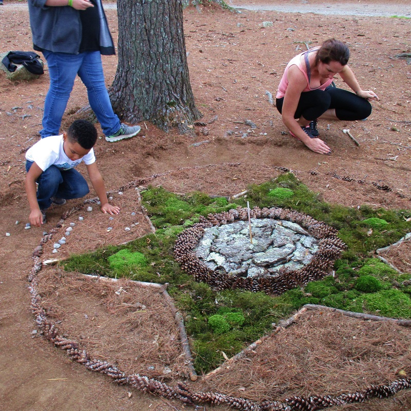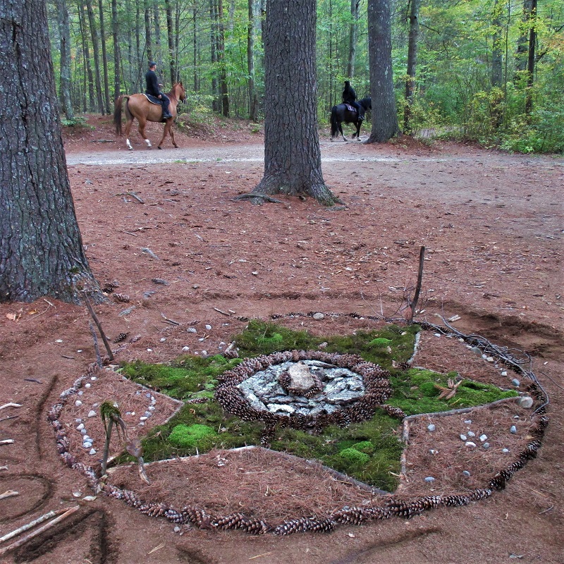 An estimated 375 pine cones and 250 feet of wire on a chicken wire armature. Borderland State Park Visitor’s Center. Easton, MA.